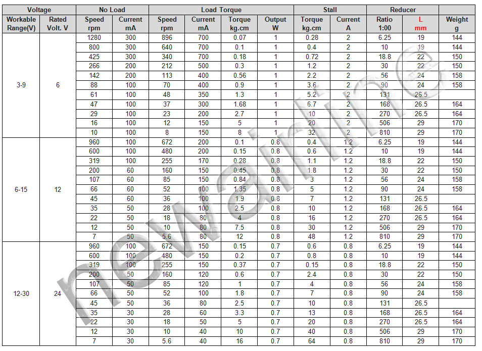 Parameters Table(JGB37-520):